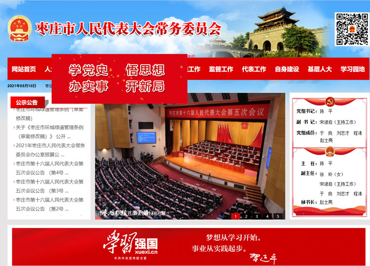 棗莊市人民代表大會(huì)是棗莊市的國(guó)家權(quán)力機(jī)關(guān)。 棗莊市人民代表大會(huì)每屆任期五年,每年至少舉行一次會(huì)議。會(huì)議由市人大常委會(huì)召集。經(jīng)過(guò)五分之一以上代表建議,可以臨時(shí)召集市人民代表大會(huì)會(huì)議。1960年,棗莊市人民代表大會(huì)建立,并召開了棗莊市第一屆人民代表大會(huì)第一次會(huì)議。 棗莊市人民代表大會(huì)行使下列職權(quán):在本行政區(qū)域內(nèi),保證憲法、法律、行政法規(guī)和上級(jí)人民代表大會(huì)及其常委會(huì)決議的遵守和執(zhí)行,保證國(guó)家計(jì)劃和國(guó)家預(yù)算的執(zhí)行;審查和批準(zhǔn)本市的國(guó)民經(jīng)濟(jì)和社會(huì)發(fā)展計(jì)劃、預(yù)算以及它們執(zhí)行情況的報(bào)告;討論、決定本市的政治、經(jīng)濟(jì)、教育、科學(xué)、文化、衛(wèi)生、環(huán)境和資源保護(hù)、民政、民族等工作的重大事項(xiàng);選舉市人大常委會(huì)的組成人員;選舉市長(zhǎng)、副市長(zhǎng);選舉市監(jiān)察委員會(huì)主任、市中級(jí)人民法院院長(zhǎng)和人民檢察院檢察長(zhǎng)。選出的市人民檢察院檢察長(zhǎng),須報(bào)經(jīng)省人民檢察院檢察長(zhǎng)提請(qǐng)省人大常委會(huì)批準(zhǔn);選舉省人民代表大會(huì)代表;聽取和審查市人大常委會(huì)的工作報(bào)告;聽取和審查市人民政府、中級(jí)人民法院和人民檢察院的工作報(bào)告;改變或者撤銷市人大常委會(huì)的不適當(dāng)?shù)臎Q議;撤銷市人民政府的不適當(dāng)?shù)臎Q定和命令;保護(hù)社會(huì)主義的全民所有的財(cái)產(chǎn)和勞動(dòng)群眾集體所有的財(cái)產(chǎn),保護(hù)公民私人所有的合法財(cái)產(chǎn),維護(hù)社會(huì)秩序,保障公民的人身權(quán)利、民主權(quán)利和其他權(quán)利;保護(hù)各種經(jīng)濟(jì)組織的合法權(quán)益;保障少數(shù)民族的權(quán)利;保障憲法和法律賦予婦女的男女平等、同工同酬和婚姻自由等各項(xiàng)權(quán)利。 棗莊市第十六屆人民代表大會(huì)代表共有394名。市十六屆人大一次會(huì)議于2017年2月19日至23日舉行,決定設(shè)立市第十六屆人民代表大會(huì)法制委員會(huì)、內(nèi)務(wù)司法委員會(huì)、財(cái)政經(jīng)濟(jì)委員會(huì)、教育科學(xué)文化衛(wèi)生委員會(huì)、城鄉(xiāng)建設(shè)環(huán)境保護(hù)委員會(huì)、農(nóng)業(yè)與農(nóng)村委員會(huì)、民族僑務(wù)外事委員會(huì)。 棗莊市十六屆人大三次會(huì)議于2019年1月6日至9日舉行,決定增設(shè)棗莊市第十六屆人民代表大會(huì)社會(huì)建設(shè)委員會(huì)和更名棗莊市第十六屆人民代表大會(huì)內(nèi)務(wù)司法委員會(huì)為棗莊市第十六屆人民代表大會(huì)監(jiān)察和司法委員會(huì)。 |